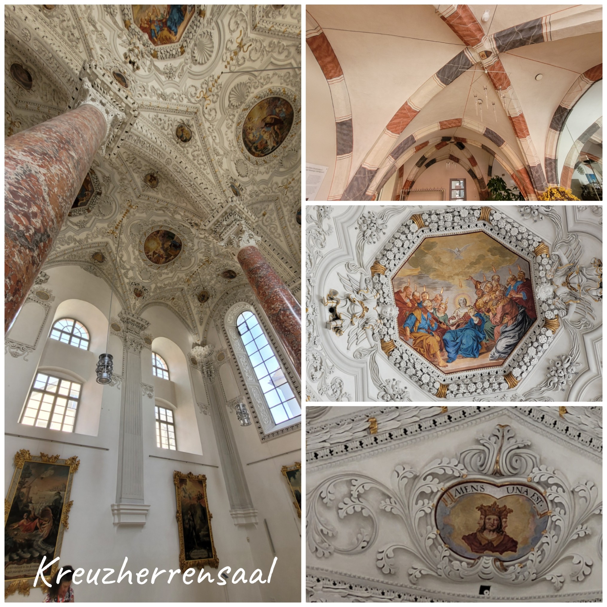 Die Stadtführerin Frau Berg führte uns zuerst auf den überdachten Wehrgang; vorbei am Salzstadel, zum festlichen Kreuzherren-Saal, zum Hexenturm, in den Zollergarten und dem angrenzenden „Einlass“, weiter zum Stadtbach, wo jährlich das Stadtfest „Fischertag“ stattfindet. Auf dem Rückweg zum Marktplatz, mit Rathaus und Zunfthaus, ließen wir uns noch ein Eis oder Kaffee und Kuchen schmecken.